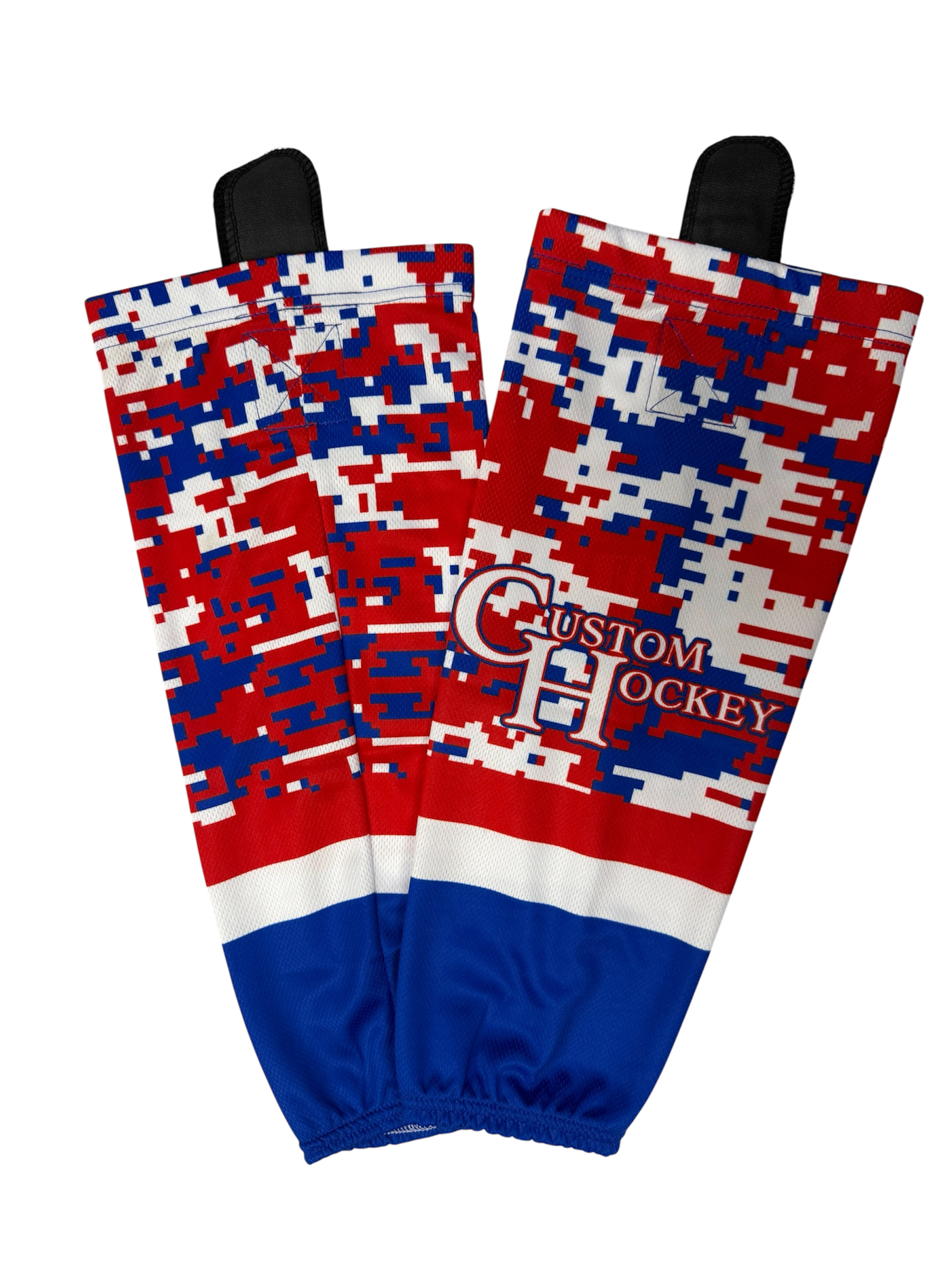Sublimated Socks allow for a seamless color design for both jerseys and socks. Logos and numbers can be added to the socks.